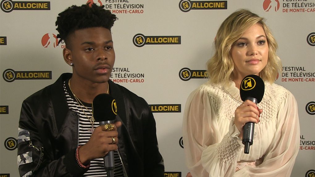 Olivia Holt et Aubrey Joseph lors du tapis rouge d'ouverture de l'édition 2018 du Festival de télévision de Monte-Carlo.