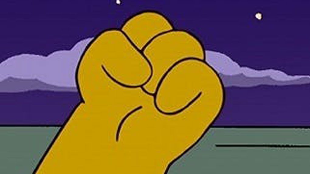 Des mains griffonnées par Matt Groening alors qu'il patientait avant un rendez-vous avec le réalisateur James L. Brooks, et colorées en jaune par la suite pour permettre aux Simpson de se distinguer des autres séries animées en un clin d'oeil.