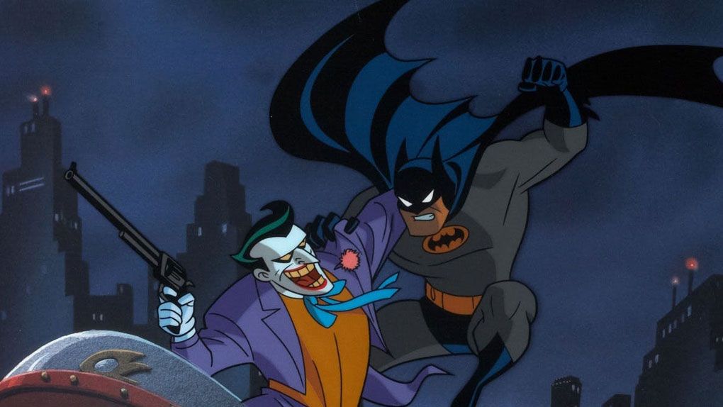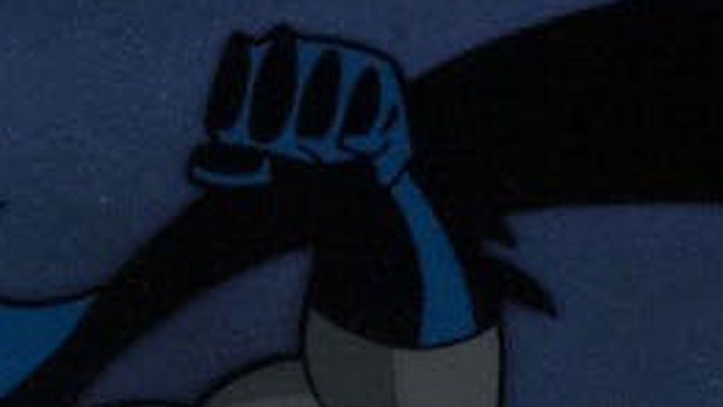 Gantée de noir, la poigne du Chevalier Noir ne rêve que d'une chose : s'écraser sur le menton du Joker.