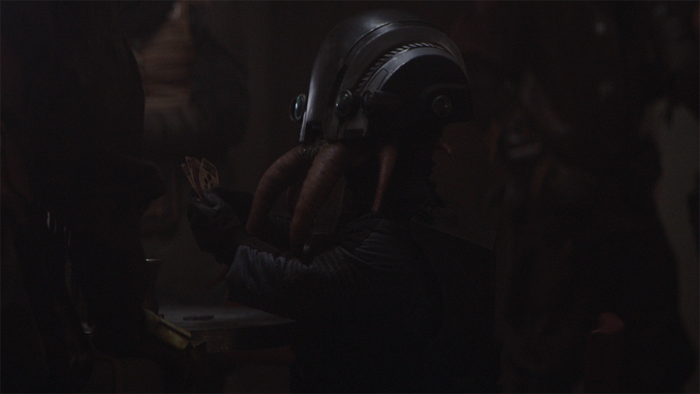 Lorsque le Mandalorien pénètre dans une nouvelle cantina, on peut distinguer au milieu de la foule des créatures en train de jouer à un jeu de cartes intergalactique très connu : le Sabbac. Dans le long métrage Solo, ce jeu permit à Han Solo, avec sa variante, le Spike Corellien, de remporter le Faucon Millenium des mains de Lando Calrissian.