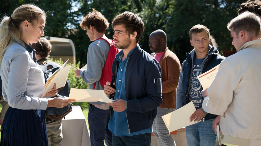 Dans le premier épisode d'Ici tout commence, Maxime (Clément Rémiens) retrouve Salomé (Aurélie Pons) lors du premier jour des épreuves du concours d'entrée à l'institut Auguste Armand. Comment vont se passer leurs retrouvailles ?