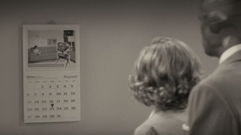 Sur le calendrier de Wanda et Vision, un petit coeur est noté sur la case du 23ème jour pour signifier leur diner avec le patron de Vision et sa femme. Il s’agit d’un petit clin d’oeil au nombre de films dans l’Univers Cinématographique Marvel (phases I, II et III) sortis avant la diffusion de WandaVision.