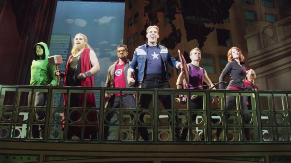Au cours de ce premier épisode, une comédie musicale rend hommage à l'ancien Captain America Steve Rogers et ses amis Avengers. A noter qu'il ne s'agit pas de la première fois que les exploits des héros Marvel sont adaptés en spectacle au sein du MCU : on se souvient en effet de la pièce de théâtre parodique au tout début du film Thor: Ragnarok.