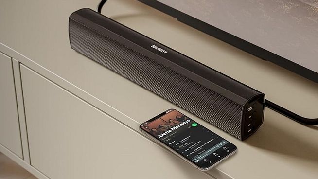 Quand on achète une TV, il faut admettre qu’on pense plus souvent à l’image qu’au son, et celui-ci s’avère parfois décevant, notamment si vous jouez à des jeux vidéo ou regardez des films et des séries. Pour booster le son de sa TV, on peut bien sûr investir dans un home cinéma mais cela peut s’avérer encombrant et compliqué à gérer. Une barre de son offre une alternative peu encombrante, simple et accessible. Cette barre de son de la marque Majority permet de profiter d’un meilleur son pour sa TV avec un prix on ne peut plus bas : 44,95 euros. Elle dispose d’un son puissant, d’une connectique permettant de raccorder tous vos appareils et d’une installation simple. Sa conception compacte permet même de l’utiliser avec un écran PC.