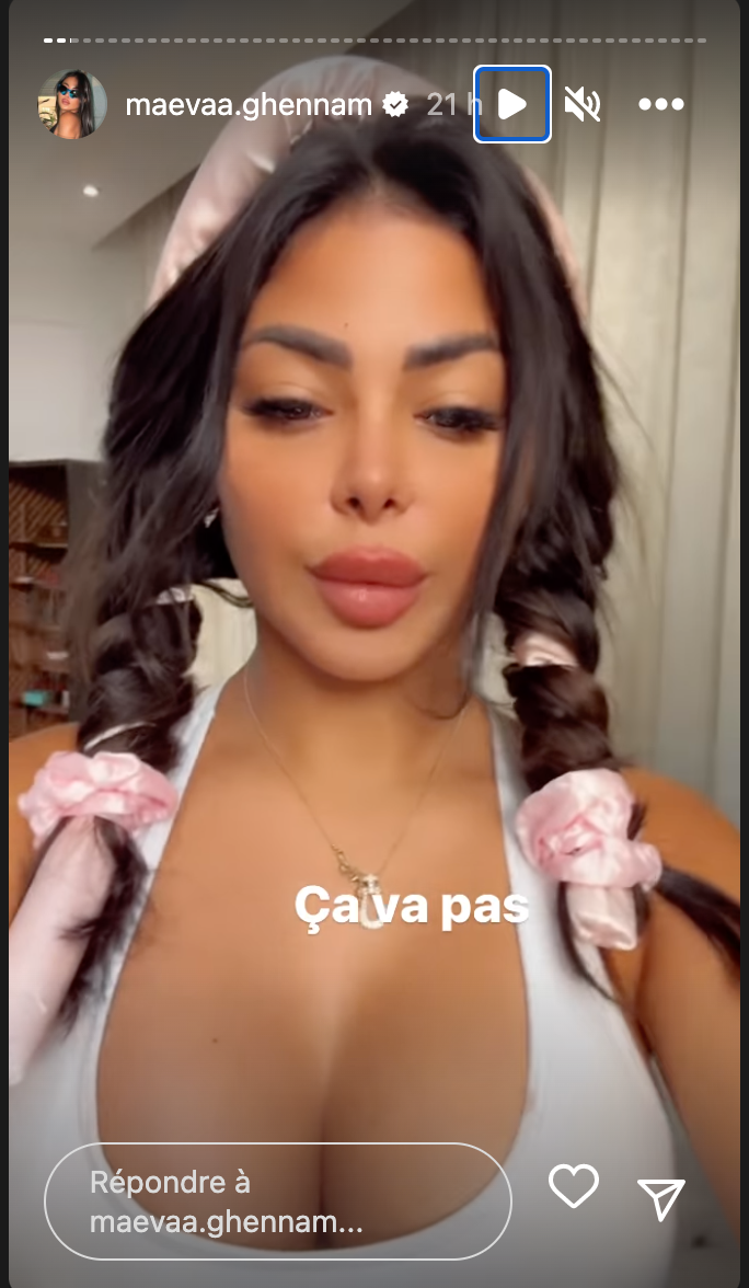 Un mal-être qui n’a pas empêché Maeva Ghennam de faire un placement de produit quelques minutes après ses stories sur sa tristesse. Business is business. Mais si elle a réussi à retrouver le sourire le temps de faire la promotion de produits pour les cheveux, elle est revenu sur ses malheurs à plusieurs reprises dans la journée, sans pour autant en dévoiler la raison. “J’ai envie d’être honnête avec vous, mais c’est pas le moment”, a expliqué l’ex de Greg Yega. Ça viendra, affaire à suivre.