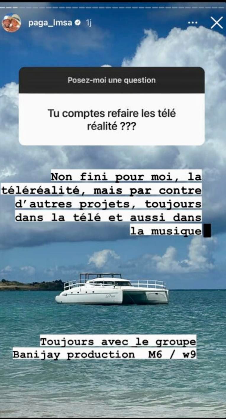 Interrogé par un membre de sa communauté Instagram sur son avenir professionnel, Paga a surpris tout son monde avec une annonce choc : "Fini pour moi la télé-réalité, mais par contre d'autres projets, toujours dans la télé et aussi dans la musique... Toujours avec le groupe Banijay Production M6/W9", a-t-il révélé. Cette décision de quitter ses camarades de jeu risque de briser le coeur de ses fans, mais pour sa belle, le Sudiste semble prêt à mettre de côté les activités qui l'ont propulsé dans la lumière.