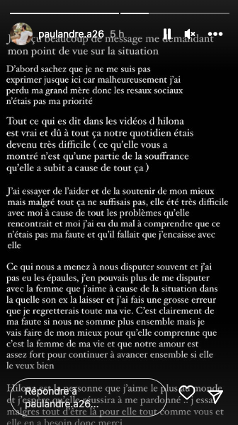 Ce mardi 7 mars 2023, ce dernier a pris la parole pour la première fois sur cette affaire très médiatisée. L'occasion pour le jeune homme de dévoiler ses regrets liés à Hilona, depuis leur séparation : "Tout ce qui est dit dans la vidéo d'Hilona est vrai, et à cause de tout ça, notre quotidien a été très difficile (...) J'ai essayé de l'aider de mon mieux, mais ça ne suffisait pas (...) C'est clairement ma faute si nous ne sommes plus ensemble", a-t-il confié, dans sa story. Il poursuit : "Je vais faire de mon mieux parce que c'est la femme de ma vie et que notre amour est assez fort pour continuer à avancer ensemble si elle le veut bien. Hilona est la personne que j'aime le plus au monde, et j'espère qu'elle réussira à me pardonner". Une belle déclaration, à laquelle elle n'a pas encore répondu publiquement.