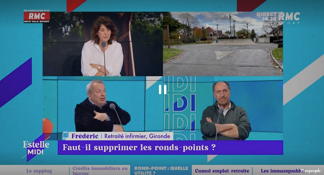Clairement, Estelle Denis est pour le remplacement de cette spécialité française par des simples carrefours à feux tricolores. Mais ça n’est pas l’avis de Frédéric, infirmier retraité de Gironde, pris à l’autre bout du téléphone. Avant d’exposer son opinion, l’auditeur prévient son interlocutrice : "J’aimerais Estelle que vous ne me coupiez pas tous les deux mots comme vous le faites avec beaucoup de vos invités, ça serait vraiment très très gentil". "D’accord", promet Estelle.