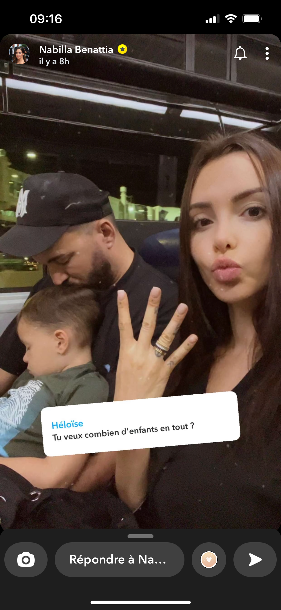 Durant son retour de vacances aux Maldives, Nabilla a profité du long voyage jusqu'à Dubaï pour lancer une FAQ sur son compte Snapchat. À la question d'une internaute curieuse : "Tu veux combien d'enfants en tout ?", elle répond avec le nombre de doigts adéquats : quatre. Alors, après ses deux enfants en bas âge, va-t-elle annoncer une future grossesse prochainement ou le couple va-t-il attendre que les garçons soient plus grands avant d'enclencher le troisième bébé ? En tout cas, il semblerait que le sujet la titille puisque dans les story suivantes, l'aîné de la fratrie demande à sa mère : "Comment tu fais les bébés ?". "Je prends une graine et je la mets dans mon ventre et je fais beaucoup de bébés garçons comme toi et ton frère et après, "baby coming" !" répond tout simplement l'ex-chroniqueuse de Touche pas à mon poste.