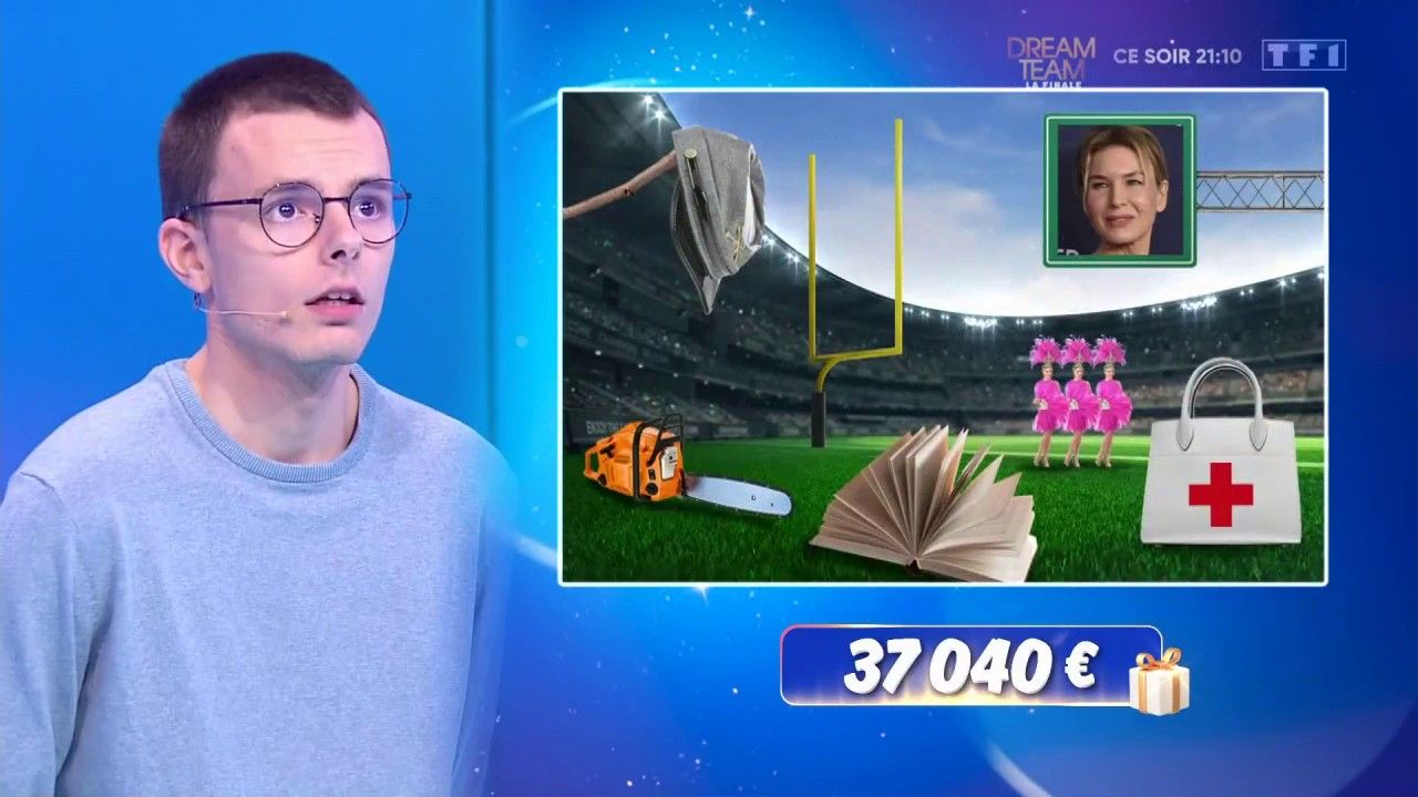 En effet, ce vendredi 26 janvier 2024, le candidat phare de l'émission de Jean-Luc Reichmann - comme les téléspectateurs - ont pu mettre un nom sur le visage de la star américaine à déceler et il s'agit de... Renée Zellweger. L'actrice de 54 ans, connue pour son rôle dans "Le Journal de Bridget Jones", répond ainsi à tous les indices qui se cachaient depuis des semaines derrière les petites cases bleues : un stade de foot américain, un sac blanc avec une croix rouge (symbole de la Croix Rouge), une tronçonneuse, une casquette militaire, un livre ouvert et des danseuses de cabaret vêtues de rose.