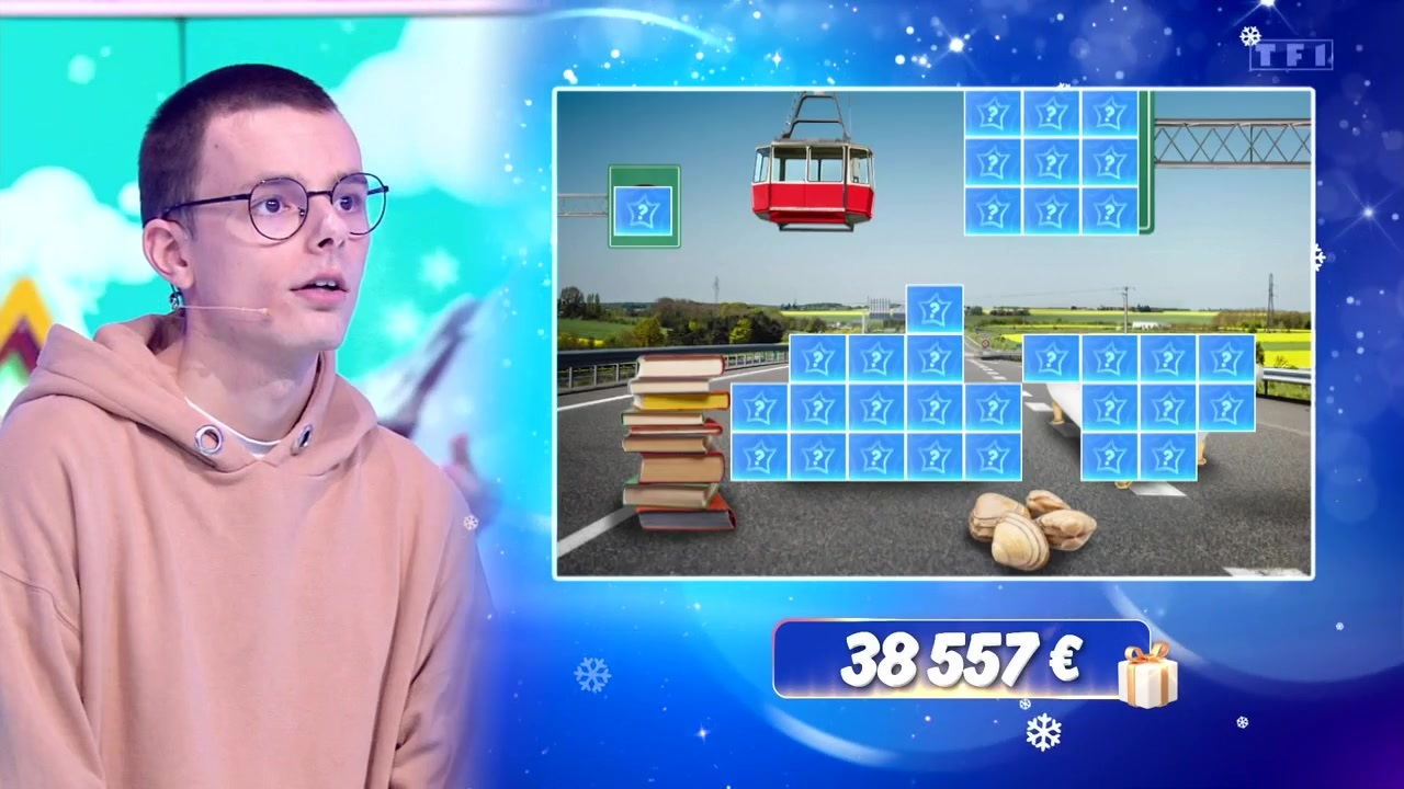 Trouvera-t-il sa sixième étoile mystérieuse avant le mois de mars ? Cela semble bien parti pour ! En effet, les indices de cette nouvelle étoile commencent à être nombreux. On peut désormais voir une autoroute bordée de champs, une pile de livres, ainsi qu’un téléphérique. Le Maître de midi avait proposé comme personnalité Gérard Jugnot. "Gérard Jugnot pour le téléphérique : Les bronzés font du ski et la pile de livres parce qu'il est enseignant dans les choristes", avait-il justifié, mais ce n’était pas la réponse attendue par Jean-Luc Reichmann. Ce dernier expliquait d'ailleurs sa loyauté envers TF1 dans C à vous.