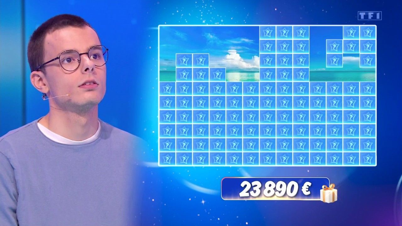 Alors qu'il vient tout juste de remporter sa septième étoile mystérieuse (il s'agissait de Kate Winslet), le chéri de Jessica s'attaque donc à sa huitième. Après une nouvelle quotidienne sur le plateau de TF1, Emilien a répondu juste aux cinq questions de la dernière épreuve et a donc soulevé cinq nouvelles cases bleues. L'occasion de découvrir le fond de l'écran : il s'agit d'un paysage paradisiaque avec des nuages, un ciel bleu et une mer d'eau turquoise.