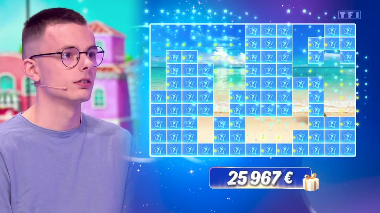 Alors qu’Emilien vient de faire un véritable sans faute sur son Coup de maître, il peut proposer un nouveau nom pour tenter de deviner qui se cache derrière l’étoile mystérieuse. Cette dernière apparaît alors, dissimulée par de nombreuses cases bleues. "Y a de l’indice là", commente Jean-Luc Reichmann, amusé par le fait qu’il n’y ait… zéro indice en plus pour Emilien qui doit se débrouiller avec la simple vue de la plage. Si Emilien a déjà proposé plusieurs célébrités pour tenter de décrocher l’étoile d'avril, il n’a pour le moment pas réussi à trouver la bonne.