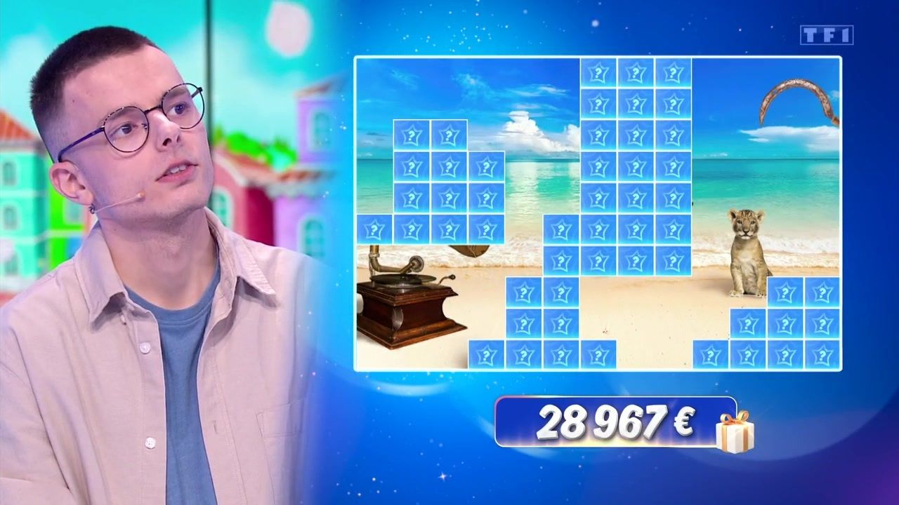 En attendant, Emilien prend chaque jour après l'autre. Ce mercredi 10 avril, le jeune homme aurait bien aimé tenter sa chance sur l'étoile mystérieuse du mois d'avril, qui l'occupe depuis plusieurs émissions déjà. D'autant qu'après la plage paradisiaque, la faucille et le lionceau, il a réussi à découvrir un nouvel indice : un gramophone, situé en bas à gauche de l'image (il n'est pas dévoilé dans son intégralité mais on le devine aisément). Malheureusement pour Emilien, qui a commis une erreur lors de la manche du Coup de maître, il a eu interdiction de faire une proposition dans l'émission d'hier. Mais le champion a regardé les indices avec attention et aura sans doute le temps, entre deux tournages, de réfléchir à l'identité de la personnalité cachée sous cette étoile...