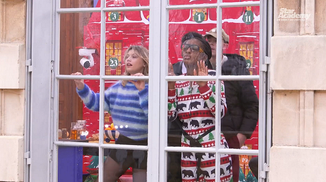 En attendant de performer sur la scène du studio 217, les apprentis artistes ont préparé leur examen, portant sur le thème "Une couleur : une chanson". Seuls quatre d'entre eux passeront au révélateur du corps professoral puisqu'Ebony et Charles ont décidé de faire l'impasse après avoir été immunisés. Ce mardi 24 décembre au matin, alors qu'ils s'apprêtaient à passer leurs évaluations, la sonnerie du calendrier de l'Avent a retenti au château. Un papier se trouvait dans la case avec l'indice suivant : "Regardez par la fenêtre". Tous se sont alors précipités à la vitre pour y voir leurs familles respectives effectuer des pas discrets dans le jardin dans leur direction. Autant dire que les retrouvailles ont été plus que chaleureuses, alors que les académiciens ont quitté les leurs pour entamer leur formation le 12 octobre dernier.