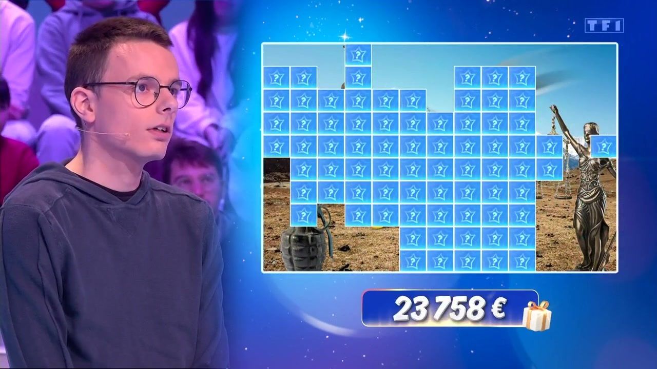En parallèle de cette séquence touchante, Emilien, l’indétrônable Maître de midi, a continué son ascension dans le jeu en s’imposant une nouvelle fois jusqu’au mythique Coup de maître. Et s’il n’est pas parvenu à tenter l’étoile mystérieuse, ses bonnes réponses lui ont permis de révéler les premiers indices de cette dernière ! Les téléspectateurs peuvent désormais apercevoir une statue de la justice en bas à droite de l’image, ainsi qu’une grenade en bas à gauche. Reste à savoir si ces deux éléments suffiront à le mettre sur la bonne piste… Affaire à suivre !
