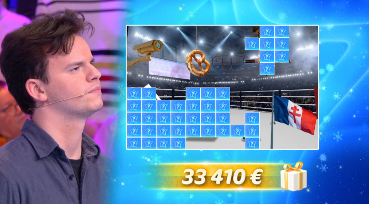 Arrivé en septembre 2025, Cyprien participait aujourd'hui aux 12 Coups de Midi pour la 145ème fois ! A la tête d'une cagnotte de 624 028 euros de gains et cadeaux, il tente depuis plusieurs jours d'ajouter 33 410 euros à ses gains. Mais pour cela, il lui faut découvrir qui se cache derrière l'étoile mystérieuse de février. Hier, un détail - non sans importance - s'est ajouté à ce que l'on pensait être un simple drapeau français : une Croix de Lorraine, emblème de la résistance gaullienne. Elle s'ajoutait alors à un ring de boxe, un périscope, et un bretzel, célèbre pâtisserie très répandue en Alsace et en Allemagne. Aujourd'hui, un nouvel indice s'est révélé : une caméra de surveillance. De quoi tenter quelques pronostics...
